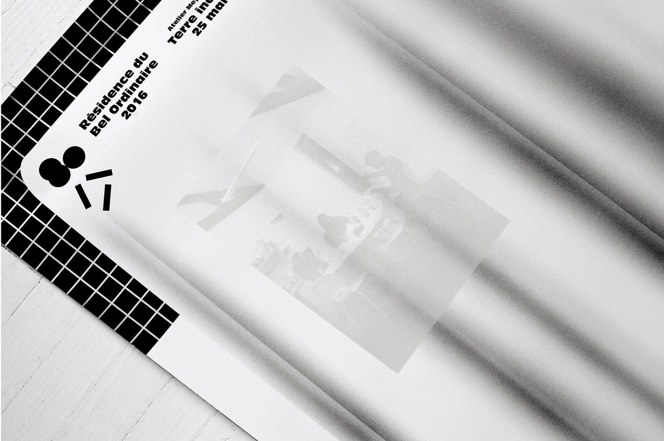 BO1 Affiche de l’exposition Terre inconnue, terrain connu restitution d’une résidence au Bel Ordinaire, une exposition partagée avec Système Sensible (Charlotte Gauvin & Matthieu Meyer) sérigraphie deux couleurs 1200 × 1760 mm 2016 affiche sélectionnée au 26e Concours international d'affiche de la Biennale de design graphique de Chaumont 2017