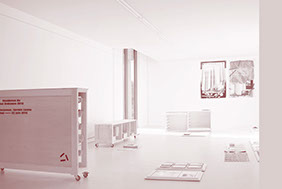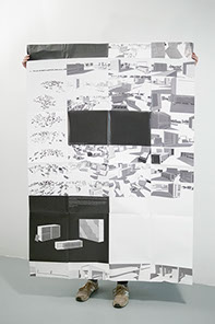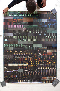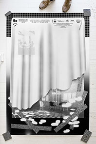 E,R6 Espace B, affiche présente lors de l'exposition Expédition, réception à l'ÉSAD Amiens, regroupant toutes les modélisation 3D du mobilier de l'expostion Terre inconnue, terrain connu impression numérique 1200 × 1760 mm 2017