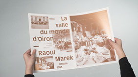 18 Affiche/dépliant pour l'exposition La salle du monde d’Oiron de Raoul Marek au Château d'Oiron offset six couleurs 300 × 400 mm puis 600 × 800 mm 2017