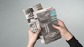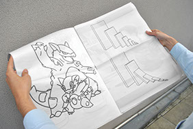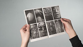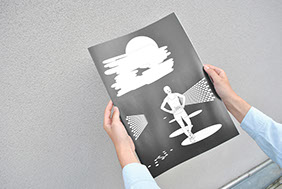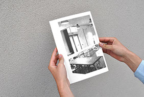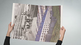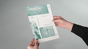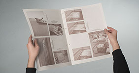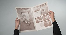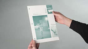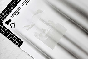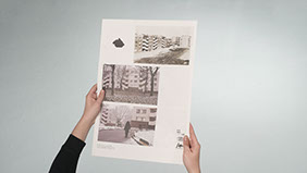 E,R4 Expédition et Réception, images du transfert de l'expostion Terre inconnue, terrain connu depuis le Bel Ordinaire vers l'ÉSAD Amiens risographie quatre couleurs 240 × 380 mm et 160 × 260 mm 2017