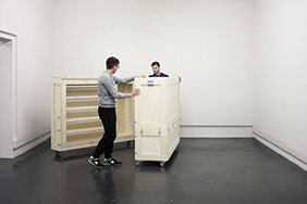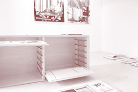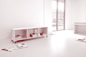 BO2 Mobilier de l’exposition Terre inconnue, terrain connu restitution d’une résidence au Bel Ordinaire, une exposition partagée avec Système Sensible (Charlotte Gauvin & Matthieu Meyer) bois aggloméré caisse no 1 1430(h) × 1900(l) × 330(p) mm, caisse no 2 830(h) × 1900(l) × 530(p) mm, caisse no 3 600(h) × 1900(l) × 530(p) mm 2016