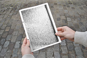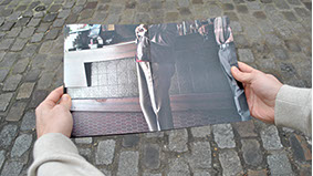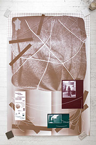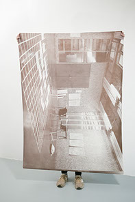 E,R5 Face A, photographie sur tissu de l'atelier 1 du Bel Ordinaire, présente lors de l'exposition Expédition, réception à l'ÉSAD Amiens impression numérique 1200 × 1760 mm 2017