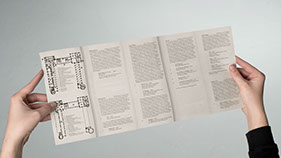 30 Réinterprétation du dépliant/guide de visite du Château d'Oiron, pour l'exposition Déclassement regroupant des œuvres de Béatrice Balcou, Hélène Bertin, Tyler Coburn, Mathis Gasser, Mobilier Peint, Aurélien Mole, Jay Tan, Céline Vaché-Olivieri, France Valliccioni et commissionné par Barbara Sirieix offset une couleur 485 × 210 mm 2018