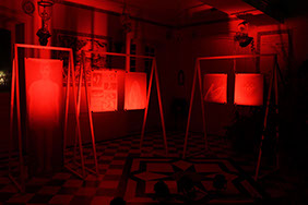 1 Double lecture, exposition dans le cadre de la Nuit Blanche d’Amiens installation lumineuse réalisée en 2011 exposée en 2012