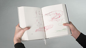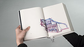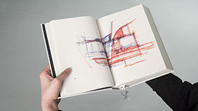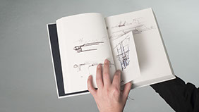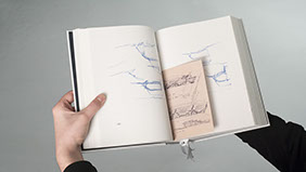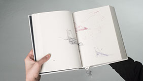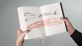 35 Livre Claude Vasconi, regroupant plus de 400 dessins de l'architecte Claude Vasconi direction artistique whitepapierstudio co-édité par Manuella Éditions et Laure Vasconi offset quatre couleurs 175 × 240 mm 2018