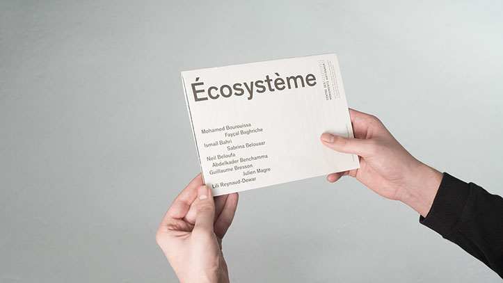 20 Document de visite pour l'exposition Écosystème de Mohamed Bourouissa, organisée par le Château d'Oiron et regroupant des œuvres de Mohamed Bourouissa, Fayçal Baghriche, Ismaïl Bahri, Sabrina Belouaar, Neil Beloufa, Abdelkader Benchamma, Guillaume Bresson, Julien Magre, Lili Reynaud-Dewar, répartie chez les habitants de la ville d'Oiron offset une couleur 150 × 210 mm 2017